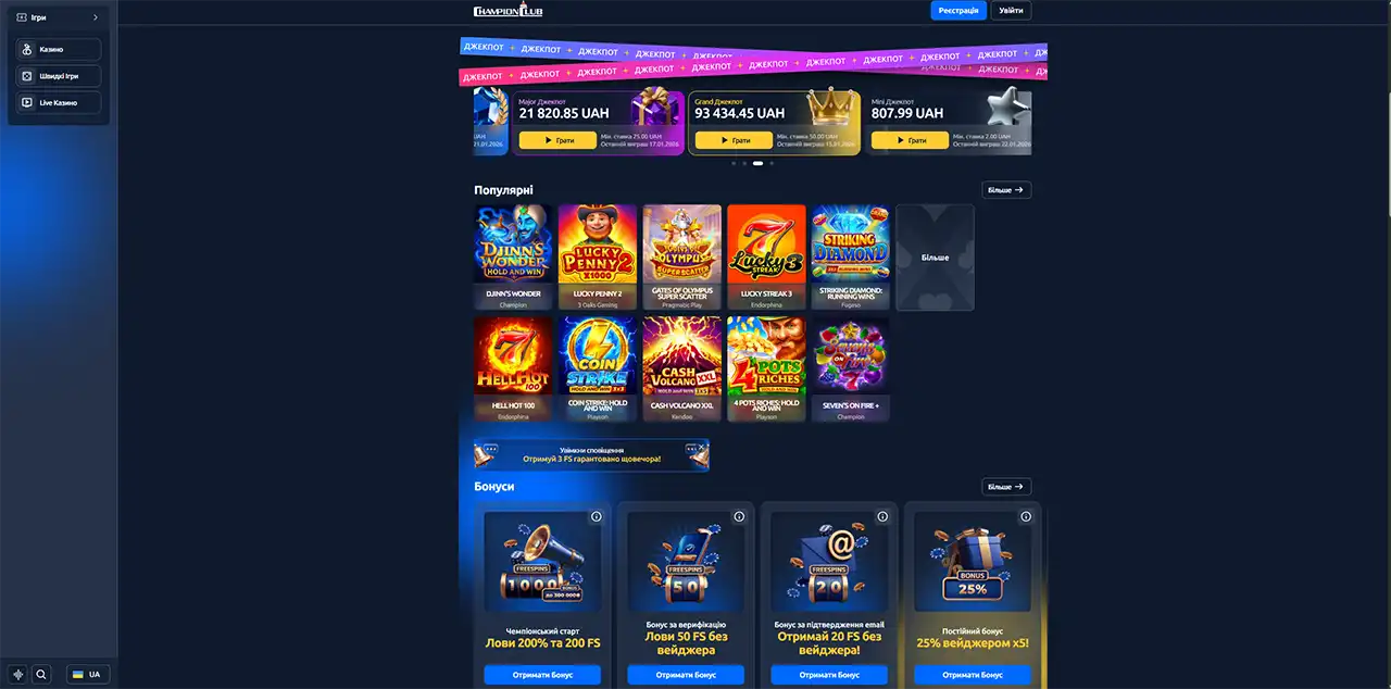 Актуальні бонуси Чемпіон Клаб на грудень 2026